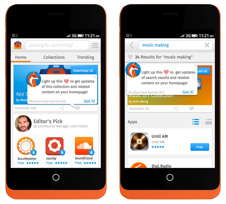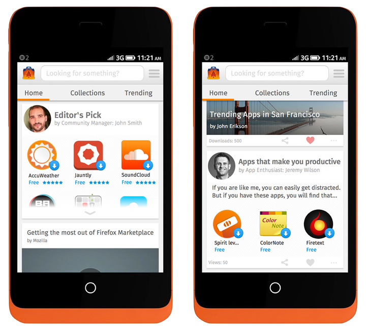 除此之外,Firefox OS 打算让应用商店更人性化。在传统应用商店中 “编辑选荐”也许只是一个极力讨好用户的虚衔,因为这只是一个链接,但用户并不能看到所谓的“编辑”是谁。