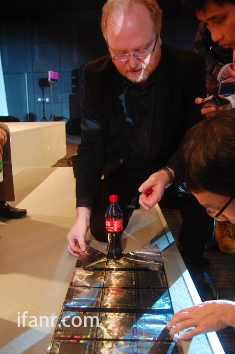 Phil 还带来了另外一样好东西,来描绘未来的移动互联网场景────那就是“柔性显示屏”。这种显示屏会极大地改变手机的产品形态,它能用“打印”的方式进行生产,并贴在家里的任何地方。在将来,当你把手机靠近柔性显示屏时,屏幕上就会显示出手机上的内容。于是,手机摆脱了尺寸的限制,成为真正的随身电脑。