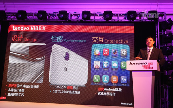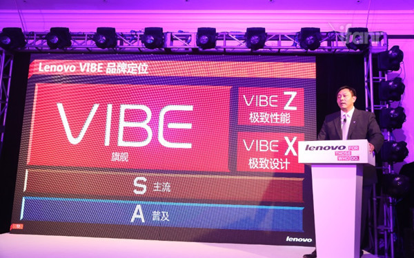 发布会上,联想高级副总裁、Lenovo 产品总裁刘军,宣布发布 VIBE 新品牌,该品牌着力于高端市场。
