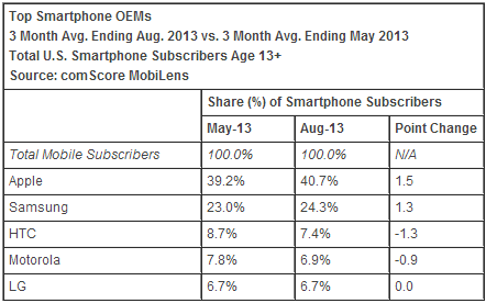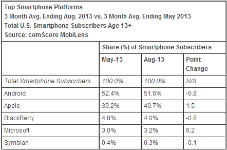 怎么看待 comScore 刚发布的美国智能手机占有率报告?