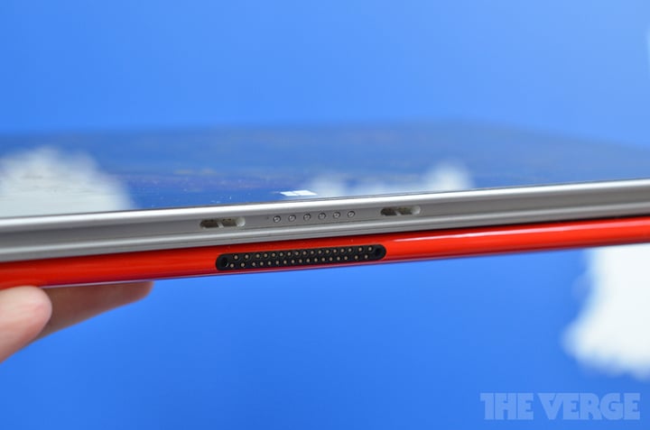 作为生产力工具,输入效率和续航成了一个重要的考察方面,这次诺基亚在之前的 Surface 的经验上更进一步,在键盘套上添加了电池,可以额外给 Lumia 2520 增加 5 小时的续航,加上机器本身的 10 小时续航时间,保证一整天的使用是没有问题的。而根据现场图片来看,这款键盘套不是那种触控型的,而是实体有独立按键的键盘,不过键程应该比较短。