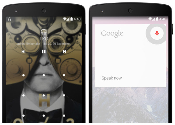 和 Moto X 着重使用语音类似,在 Android 4.4 上,用户不需要触摸屏幕进行操作,仅需要说一声“OK,Google”就可以启动语音搜索(需在主屏界面或 Google Now 界面),发送短信,导航或者播放歌曲。但是这样的特性可能到具体机型上会有不同。而在锁屏状态下也可以进行操作音乐播放的暂停等功能,同样也适用于 Chromecast 播放的时候。