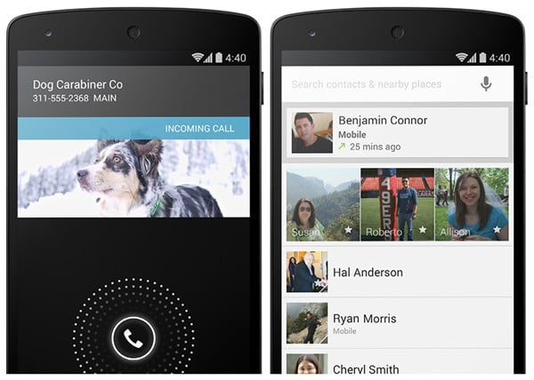 更智能的电话,当陌生号码打进的时候,系统会自动根据 Google 地图中的数据列表搜索匹配的企业商务号码。而联系人列表也会把经常联系的联系人优先显示,用户还可以搜索附近的企业商务号码以及联系人。