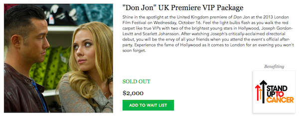 也许很多人嗤之以鼻,但这样的市场的确存在。顾客从 IfOnly 购买的是他们所认为与众不同的体验,而名人也愿意透过这个窗口获得一些额外的关注,例如一场与约瑟夫·高登·莱维特与斯嘉丽·约翰逊的一起出席电影首映的机会,收益将用于对抗癌症运动 Stand Up To Cancer。