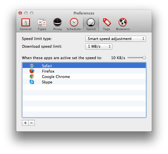 除了下载速度快,还要够聪明。Folx 3 Pro 支持“智能调速”(Smart Speed adjustment)和“定时任务”(Scheduler)功能。前者能够让 Folx 在特定应用运行的情况下自动“让出”带宽,放慢下载速度以保证其他任务的正常进行;