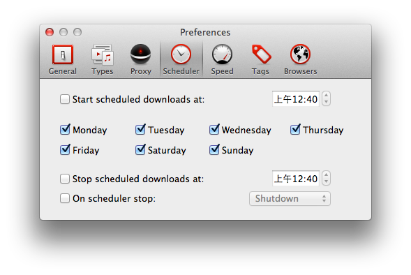 后者则能让你非常轻松地安排下载任务,比如让计划任务在 0 点到 8 点这段时间下载,任务完成之后还能选择关机、休眠或是退出 Folx。