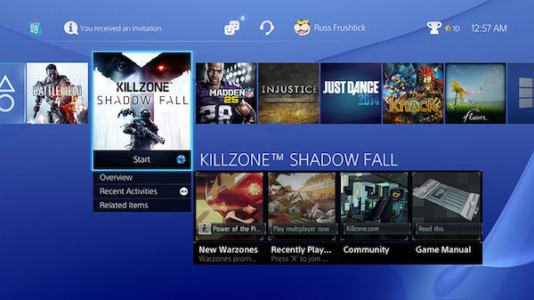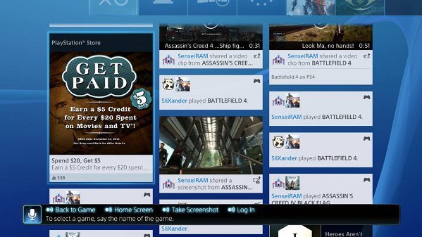 而 PS4 系统最大一点不同的地方,是一块在于界面栏下方的信息墙,这里是整个 PS4 系统的核心部分,它归集了一切与游戏相关的资讯。这里就像是一个 PlayStation 独有的社交网络一样,罗烈了你好友的所有近况,他们玩了什么游戏,上传了什么炫酷的通关截图、视频,拿到什么奖杯等等。