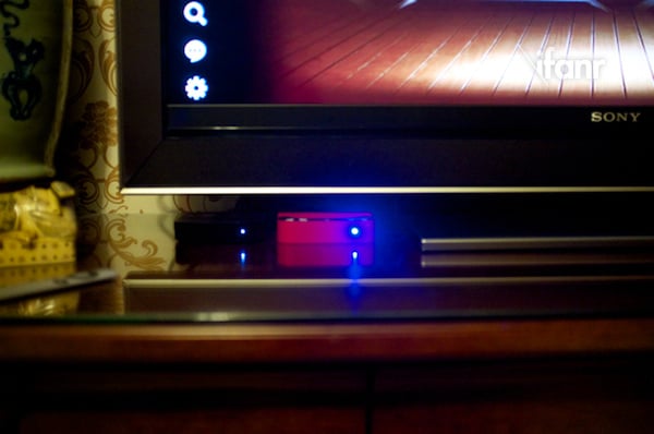 不过这款产品也有很人性化的一点,就是若长时间没有接收操作指令的情况下魔盒会进入自动休眠状态(红灯),但这时如果有人走到魔盒前,内置的红外线感应器即可立即点亮系统。