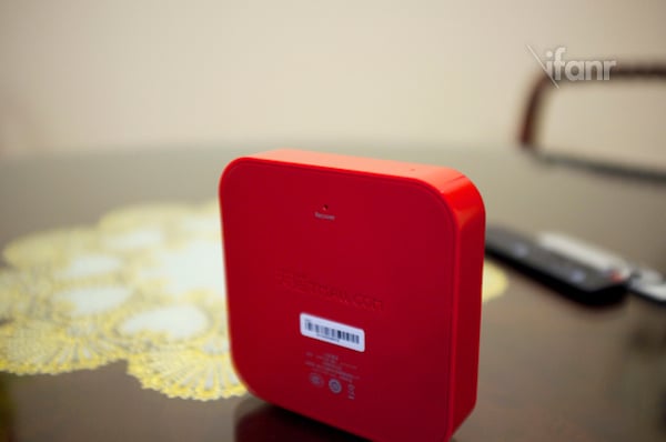 魔盒正面有一盏状态指示灯,运作时呈现蓝色,休眠时则呈红色。这里需要指出的是,魔盒上的指示灯实在太过 “耀眼了”,如果你习惯将机顶盒与电视机放在一起,晚上看视频时,指示灯的光度会让你不能直视,希望天猫能在后期的产品上改进一下。