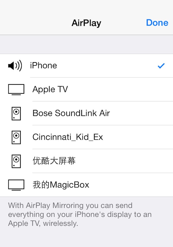 除了能播放家庭网络硬盘中的媒体内容外,天猫盒子也能充当一个移动端投影热点(同时支持 iOS 与 Android),将手机、平板上的照片、音乐、视频投影在电视机上。