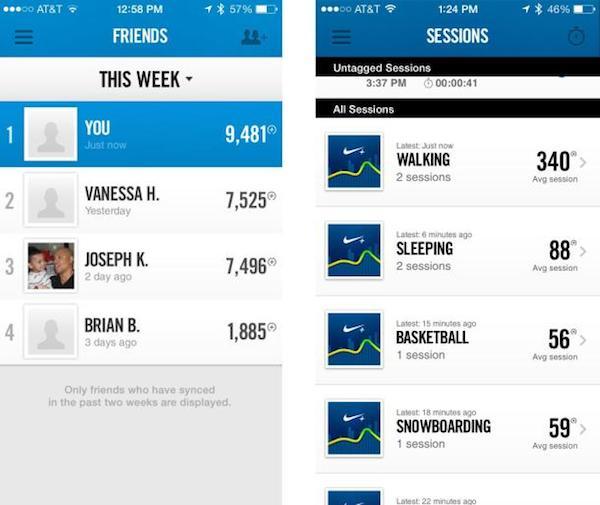 Nike Fuelband 在 iPhone 上的 Nike+ 应用也有一定改进,除了一些基本功能,如当日卡路里消耗、步行数目标,以及提示器的时间设定外,Nike+ 在社交方面增加了好友的分组功能,而且应用还能通过分析你的 Facebook 资料和所住位置,自动寻找附近的挑战者。当然用户还是可以自行选择是否公开这些个人信息。