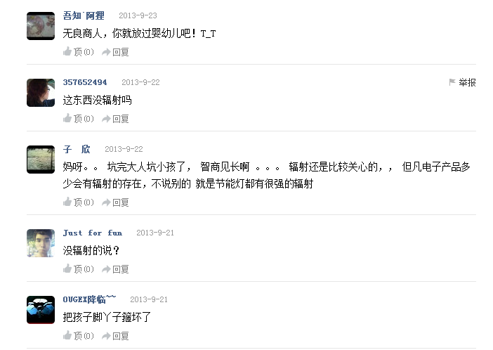 面对这样的一个产品,评论非常一致地表示了担忧和批评,而且很多都指向了辐射这个许多人谈虎色变的词语。从当年日本地震海啸引发的我国哄抢碘盐事件就可以看到我们许多国民对于辐射的认知还非常之浅,以至于许多小区的大爷大妈都抗议运营商在小区旁边建立基站。这里面的原因还有许多厂商为了推销而恶意夸大辐射危害的原因,其中甚至有运营商为了宣传网络的而参与的虚假宣传。