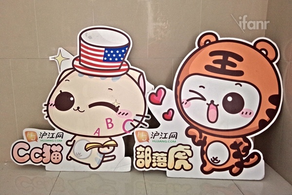 (沪江网的两个吉祥物:CC 猫和部落虎)