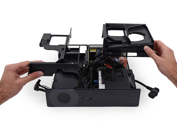 原因是,从拆解中发现,这部机器本来就为了方便拆解而设计,例如要打开机器外盖仅需要解开一颗螺丝,同时在内部不同功能组别的硬件,也通过金属罩以不同部件的形式区隔开来,因此为单个部件更换提供了便利,如硬盘和显卡等。