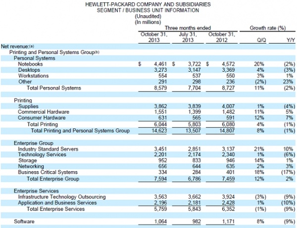 促使惠普改变的原因在于 PC 遇冷、出货量持续下滑的现状。在惠普 11 月发布的第四季度财报中,x86 服务器和商用打印机的营收表现依旧良好,但桌面电脑和笔记本电脑的营收与去年同期相比,分别下降了 3% 和 2%。