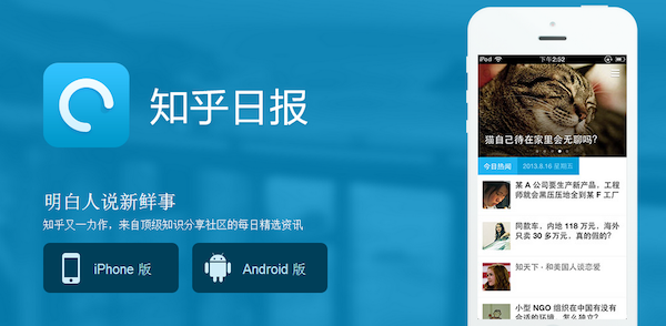 “知乎周刊” 和 “知乎日报” 即是为此而生的产物。以 “知乎日报” 为例,这款在 2013 年 5 月推出的轻阅读应用, 由编辑团队筛选出主站上每日的热门话题,通过这个小小的应用,让非知乎用户轻松就能看到来自知乎的优质内容,影响力也顺势拓展到全新的用户群当中。目前,在几乎没有付费推广的前提下,知乎日报安装量已过 300 万,平均每篇文章都有超过 20 万的阅读量,需要指出的是,包括知乎日报、知乎移动客户端的浏览量,均未统计在之前公布的独立 UV 量中。