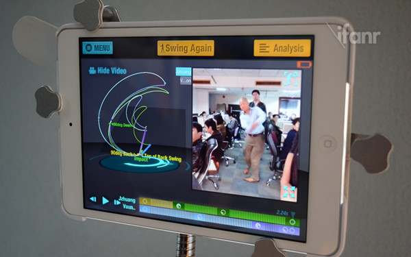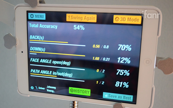 在每一次挥杆之后,精确到毫秒级别的传感器便能记录数据,对比自己选定的虚拟教练,通过立体的数据查看需要改进学习的地方。