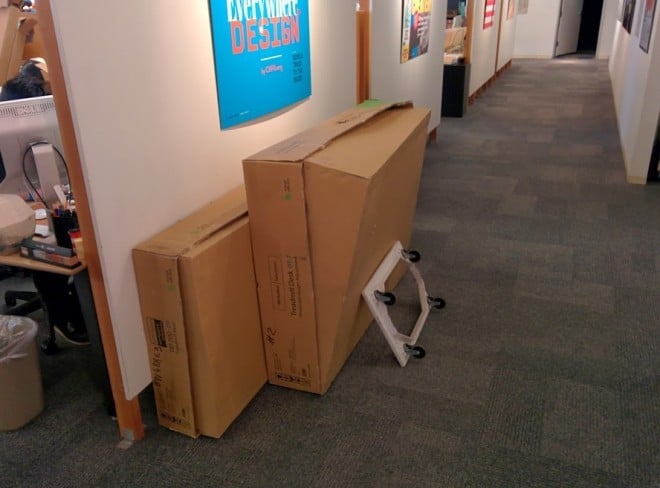 好了,组装好了之后,Wired 编辑就跃跃欲试了,他启动了书桌跑步机并“奔跑”起来了,在他认为一个合适的速度“奔跑”。最后算下来的速度是 0.4 英里(约 644 米)每小时,这个速度相当于雅典奥运会刘翔速度的 1/48,更形象一点儿的说就是半夜摸黑从卧室走到卫生间的速度。当然,作为一款跑步机,它最大的速度可以达到 4 英里每小时,只是这个速度不适合停留在书桌前。