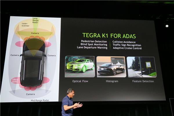 为什么汽车需要 Tegra K1?因为它有强大的性能。为什么汽车需要性能强大的芯片?黄仁勋说,这是为了“先进的汽车辅助功能。”他还说,“这是通往无人驾驶汽车的第一步。”