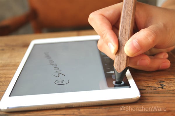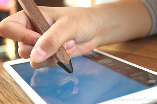 另外插播一下,很多媒体和电商网站在解读的时候,说胡桃木的 Pencil 可以吸附在 iPad 上,这一点是不对的。iPad 没有那么大的吸附力,且吸附面非常狭窄,不足以挂住这个重量哪怕只有 26 克的笔。所以,想亮瞎别人的眼,记得给自己的 iPad 买 Smart Cover 哦。