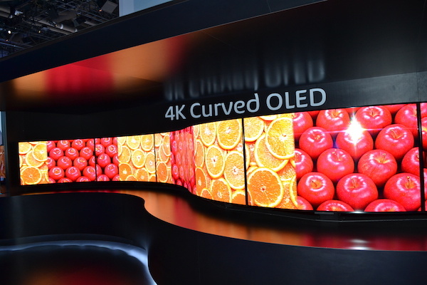 除了索尼之外,首先看到的是松下的展区,整体来说没什么亮点,不过松下是自三星、LG 之外,另一个展出 4K 弯曲屏电视的厂商,而且弯得不轻,弯得连绵不绝。
