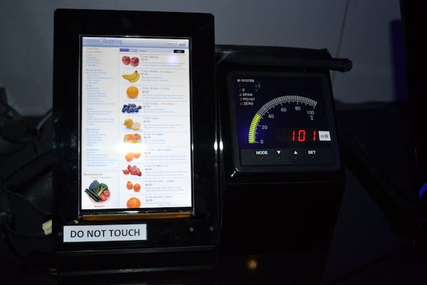 IGZO 最值得骄傲的应该是超低的功耗,这个平板尺寸 IGZO 屏幕旁边有一个实时计算功率的仪表,大家看下数字大概就能体会功耗有多低(数字会变动,101 mW 是比较低的数值,平均应该在 130 mW 左右)。