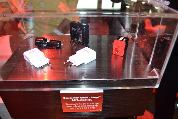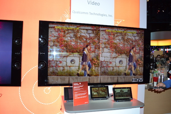 可以看到,有了骁龙 805 加持的 1080p 视频在扩展至 4K 电视上时,播放效果更为细腻。除了主打的骁龙 805 之外,高通还展示了快速充电技术。