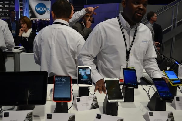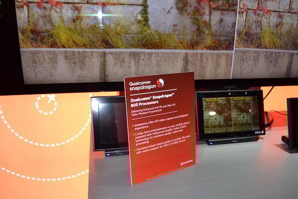 高通展区依旧展出许多搭载高通系列芯片的智能手机和平板电脑,但是高通此次的主打的却是高清视频支持芯片,即高通骁龙 800 和 805。