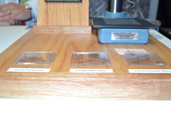 虽然主要产品是大猩猩玻璃,但康宁展区并不算小,参观的人也不少,不过好像更多的是买主在洽谈生意的感觉。目前多数的高端智能手机都是采用了康宁的大猩猩玻璃,而康宁也把这些手机大大方方地展示出来了。