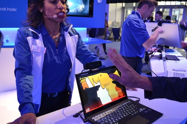 在游戏方面,Intel 还有更大的杀器,试玩这套设备的人排起了长队。
