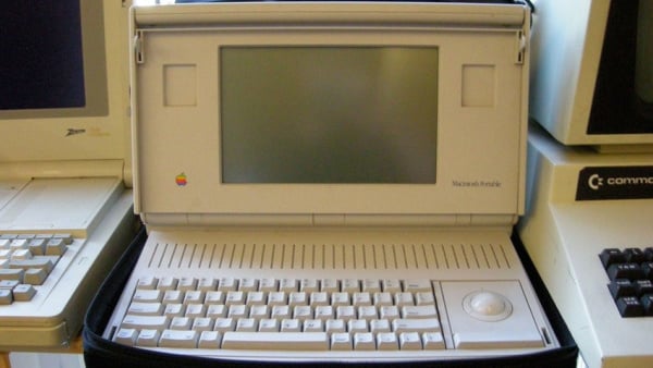 Macintosh Portable 在 1989 年发售,主频 16MHz 的摩托罗拉 68000 处理器在当时已经非常快了。它也是苹果第一款带电池的电脑产品,大致上,我们可以认为它是一款笔记本电脑,即使重达 16 磅(约 7.26 公斤)。