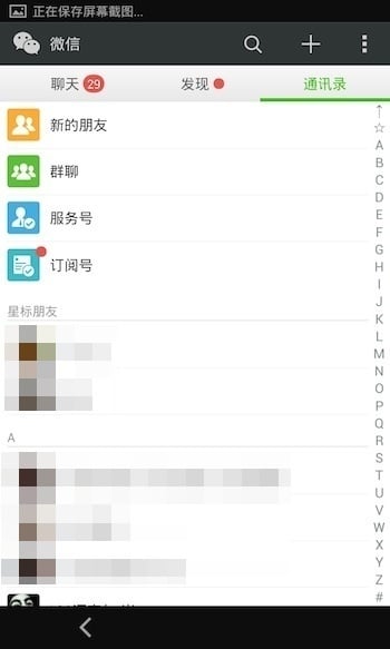 通讯录界面,固定在顶部的“我的朋友”、“订阅号”、“服务号”等被放在一起,基本样式跟聊天的一致。