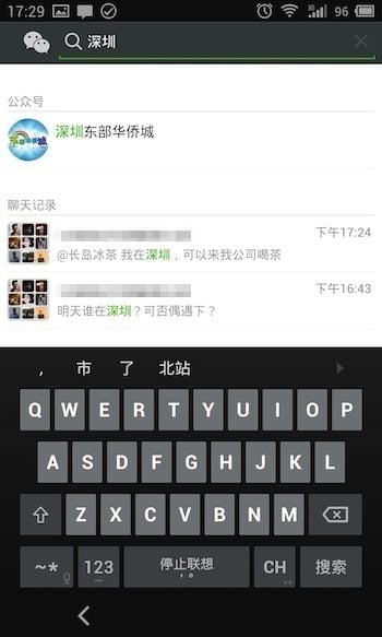 点击“放大镜”,直接出现搜索界面,文字 / 语音输入即可搜索,微信 5.2 对搜索功能的改进是,可以搜索聊天记录里的内容。对于那些经常在微信里谈事情的人来说,这是个很好的功能。