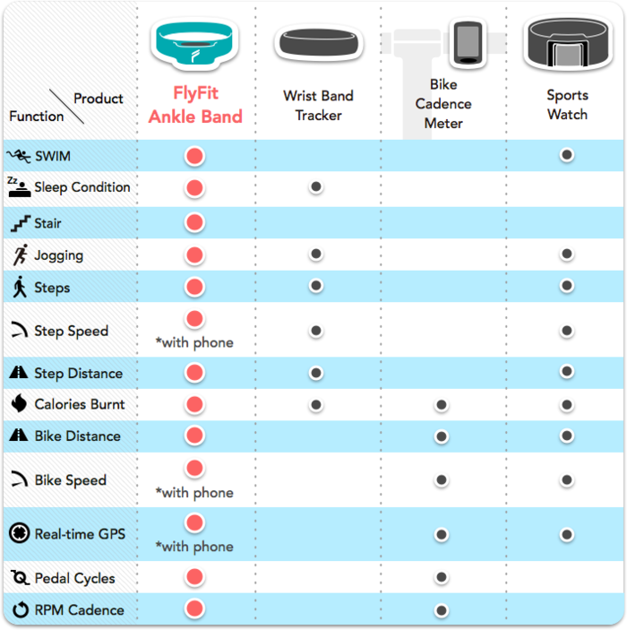 Flyfit 之所以想要把健康追踪设备由惯常思维中戴在手腕上改到脚腕上是因为他们创始人的一次经历。这位创始人的妻子是一个健身狂人,但是她发现没有一款健康类可穿戴设备可以追踪到她骑自行车时候的运动数据,因为市面上大多数的这类设备都是通过感应手臂的运动来获得运动数据的。