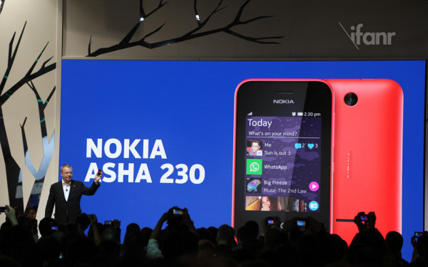 随着诺基亚 220 之后发布的是 Asha 系列的新机 Asha 230,外形和此前的 Asha 机型比较类似,活泼可爱似肥皂。Asha 230 内置了微软云存储服务 Onedrive,售价为 45 欧元起,支持之前好评度颇高的双击唤屏功能。