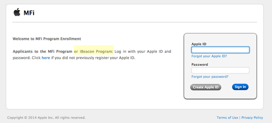苹果悄悄地开放了 iBeacon 申请入口,作为苹果认证计划 MFi 的一部分。只要能达到苹果要求的技术标准,任何基站制造商都可以申请使用“ iBeacon ”商标。
