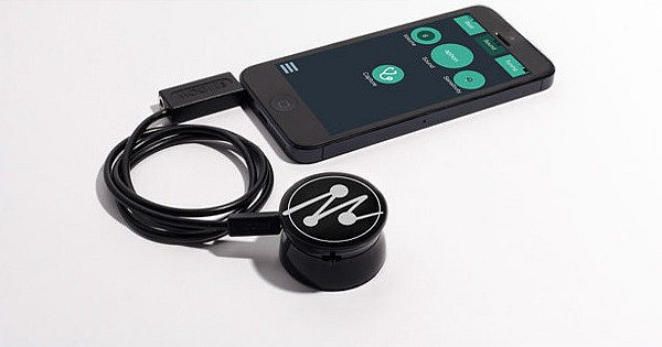 和过去一样,Mogges 依旧借用来自听诊器的创造灵感,可以扑捉的外界声音转化为音乐。简而言之,将 Mogges 贴靠在物体表面,敲击物体,它就可以将感应到的震动传递给手机,然后手机上的配套应用会将这些震动翻译成音乐播放出来。