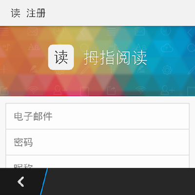 Q10 无法良好使用 Android 应用还有一个特别的原因,屏幕太小,无法完整显示 Android 应用的初始界面,以至于无法注册、或是登陆。看下图你就明白原因: