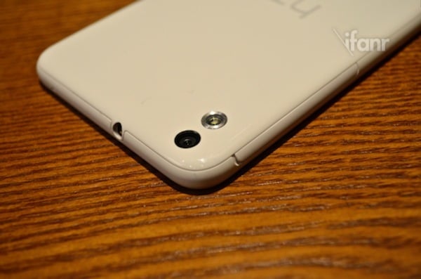 新 Desire 的背面需要重点表扬,可以说这是我们看过背面最简洁的 HTC 手机了。这点也符合了这款产品时尚清新的风格定位。以我们拿到的白色版为例,整个乳白色的背部仅有一个 HTC logo 和点缀在左上角的摄像头。但这种 less is more 反而让人爱不释手。