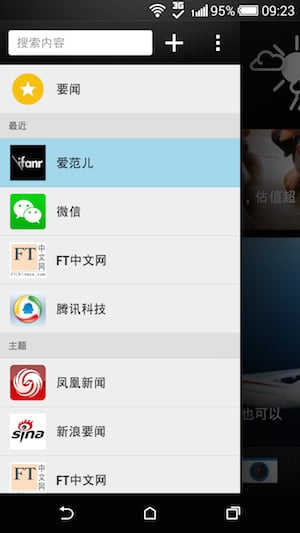 伴随着 Android 的发展,HTC 标志性的的 Sense UI 也一路来到 5.5 版本。Sense 5.5 相较当初伴随 HTC One 发表的 Sense 5 来说做了大量细节的优化,该 UI 著名的资讯整合页面 BlinkFeed 也提供更高的自定义功能。对于国行机型来说,BlinkFeed 与微信、微博进行了深度整合,授权后即可在 BlinkFeed 查看朋友圈最新动态。当然,我们认为 HTC 仍然可以在未来继续优化 BlinkFeed 的功能,例如目前的在 BlinkFeed 中阅读文章时的排版依然略为简单。