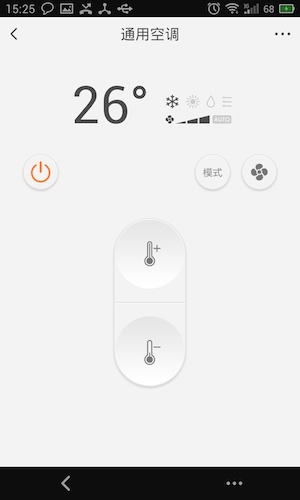 - 过了大概十几秒的样子,信号识别成功,就能够直接通过手机来遥控空调了。