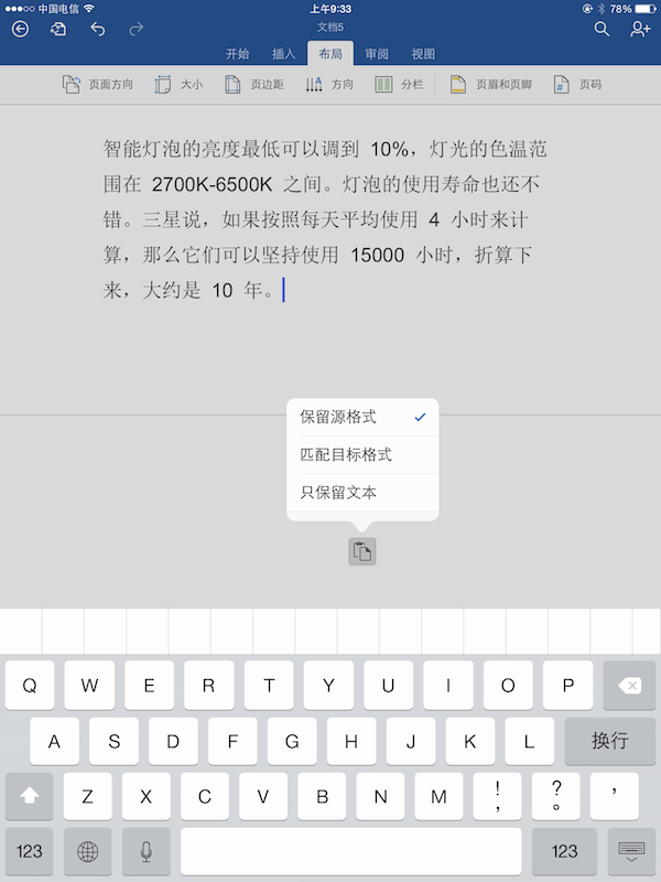 对熟悉 Office 的人来说,上手 Office for iPad 也没有太大难度。以 Word 为例,无论你是要调整字体,还是插入表格、图片、形状,抑或调整页面布局,都可以轻松做到。
