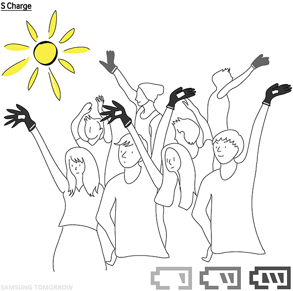 Samsung Fingers 还颠覆了过去一贯的充电方式。电池没电?晒晒太阳就可以了。太阳能完全绿色无污染,不用担心绿色能源组织找你的麻烦。Qi 无线充电?一边玩去吧。