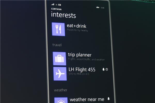 - Cortana 不仅是语音系统,还是个人生活助手,自动提供新闻、航班等讯息,另外,还能扫描用户邮件(需要用户授权),比如扫描到用户定了机票,就会自动提醒;