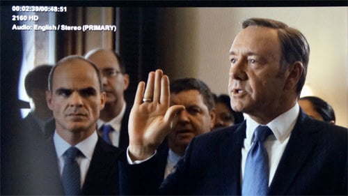 不过不是说有了 4K 电视和购买了 Netflix 的服务就可以观看 4K 流媒体的《纸牌屋》了,Netflix 的 4K 视频还对硬件有更多的要求,只有内置 H.265/HEVC 解码器的 4K 电视才能观看。今年在 CES 上发布的大多数 4K 电视就带有这种解码器,进度较快的已经开始发货了。