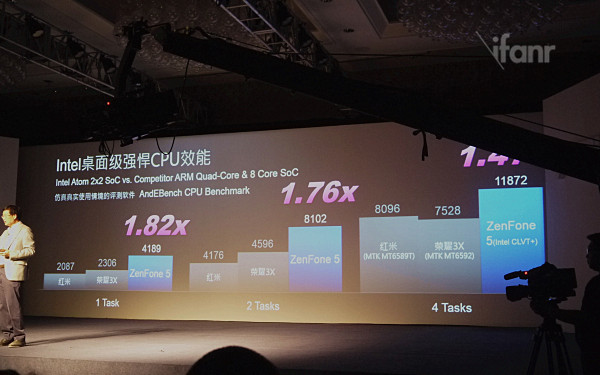 谈及为何要和英特尔合作的原因,沈振来表示,他们看中的是英特尔芯片的性能,现场还公布了一些跑分结果,压红米,过荣耀不在话下。