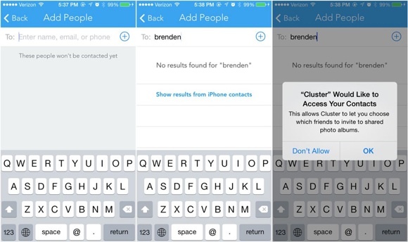 在要求通讯录权限这一方面,Cluster 选择了“先让用户尝点苦头”。当用户发现他们几乎无法搜索到朋友的时候,点选“显示通讯录好友”并允许通讯录获取权限的比例达到了 100%。