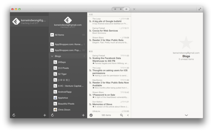 昨晚,Silvio Rizzi 终于发布了 Reeder 2 for Mac 的第一个 Beta 版。尽管只是一个测试版,但我想它足以证明时间并没有白费。以下为 Reeder 2 for Mac Beta 版的体验详情:
