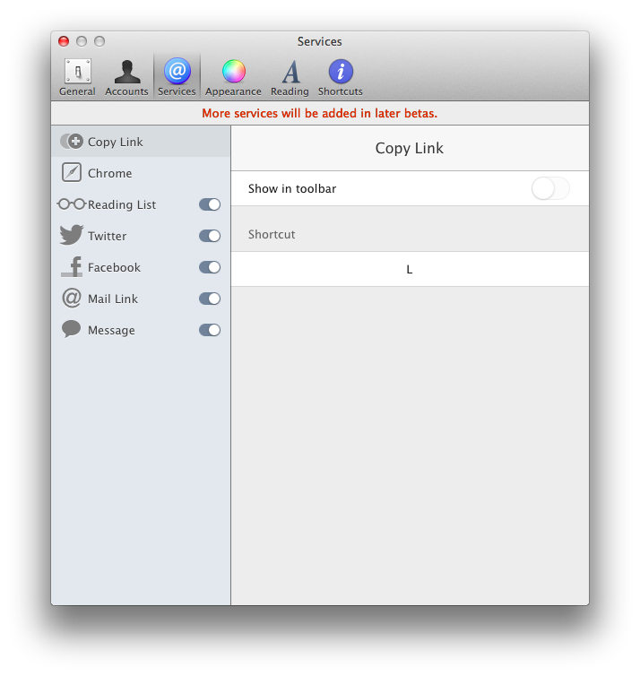 另外,Reeder 2 for Mac 的这个 Beta 版本暂时没有加入对第三方服务的支持,后续的测试版会逐渐加入。