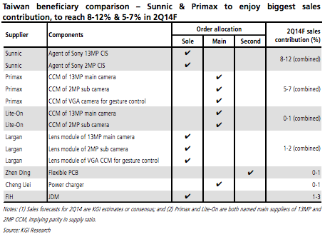 同样是 BGR 的报道,来自台湾的郭明池( Ming-Chi Kuo)之前给出了供应链方面的图片,证明了亚马逊手机将采用前置 200 万,后置 1300 万,另有提供动作捕捉功能 VGA 摄像头的传言。